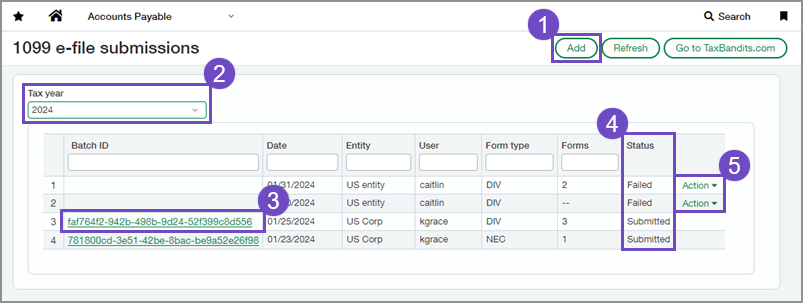 Enable 1099 e-filing powered by TaxBandits on the Configure Accounts Payable page |